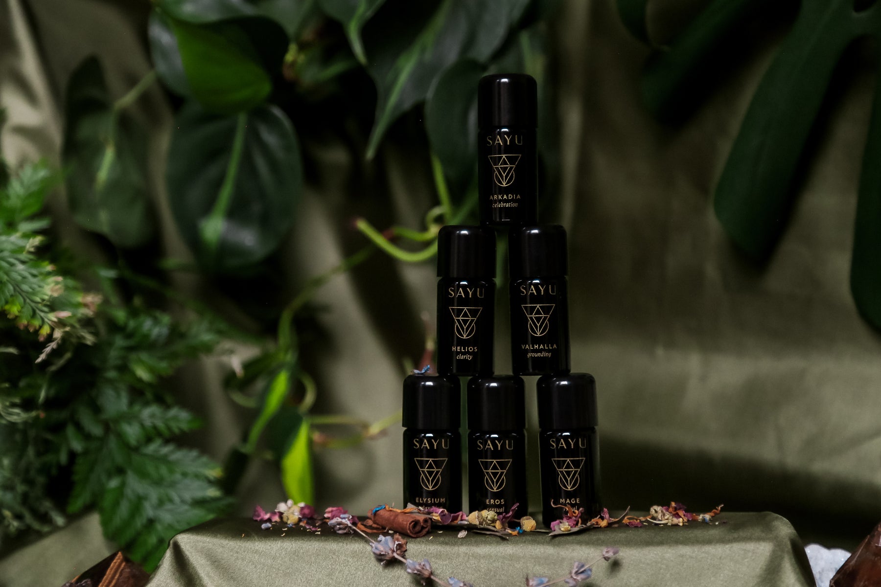 Most commonly, our customers use their Sayu blends like a perfume or cologne - applied to pulse points (like the wrist, neckline, or behind the ear) either directly from the bottle, or diluted in a carrier oil (for those who have skin sensitivity or prefer a lighter scent).